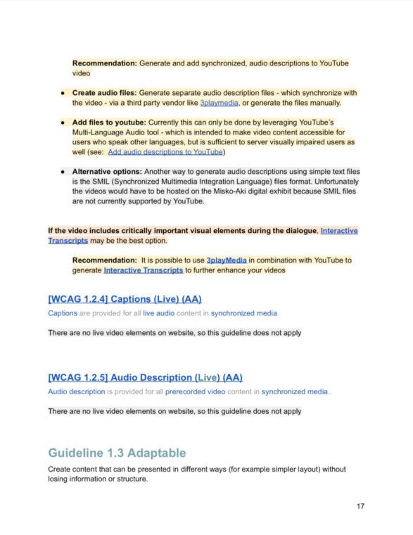 In addition to automated and manual testing, a thorough review and report on how the digital exhibit complies with WCAG 2.1 AA standards.